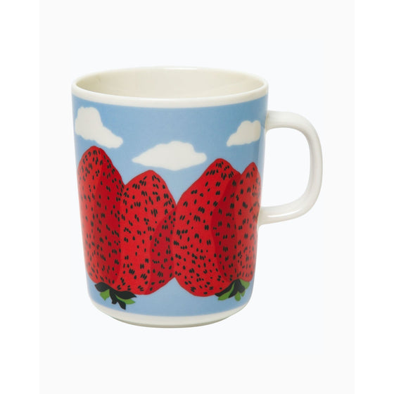 Exuding a dream-like vibe, the cheerful, vibrant mansikkavuoret (strawberry mountains) pattern was inspired by the pop art of the 1960s and has been re-released as part of the celebration of marimekkko's favourite designs.